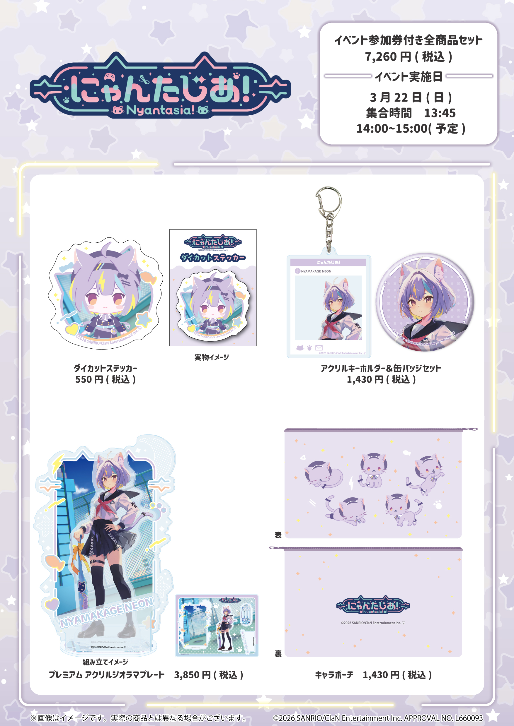 2026年2月9日18:00〜2026年3月22日15:00までの先行受注期間中に通販サイト「サンリオアニメストアONLINE」でイベント参加券付き全商品セットをご購入いただいた方には、2026年3月22日(日)14:00〜15:00に「サンリオアニメストア 池袋P'PARCO店」で開催予定の特別イベントへご参加いただけます。